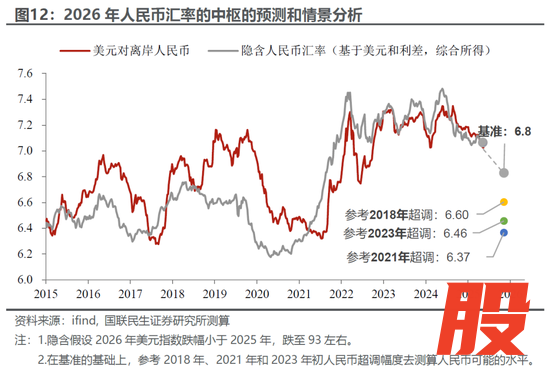 基准部分我们在之前的报告《人民币涨多了吗?》中已经提及,基于对于美元2026年继续小幅贬值的假设,基准水平大致在6.8左右。