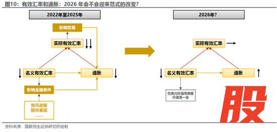 最后,我们可以从调整汇率和通胀组合模式,重构内外的新均衡。比如展望2026年,为了避免顺差扩大更快、避免不必要的贸易摩擦,可以保持实际有效汇率稳定(甚至略有上涨),那么背后更理想的构成可以是名义有效汇率有所下跌,而国内的通胀水平有所上升。