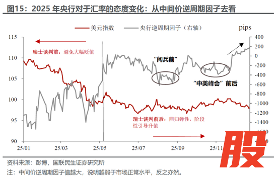因此,吸取之前的经验,央行积极的逆周期调控在2026年就非常重要。从2025年看,央行在中间价的逆周期调节上已经在逐步增加力度,比如自11月底以来,面对人民币加速升值的行情,中间价的报价往偏弱的方向引导,以此给市场降温。当然这肯定是不够的,由于2026年春节时间较晚,第一季度到第二季度初都会是提防汇率超调的重要时间窗口(参考2018年)。