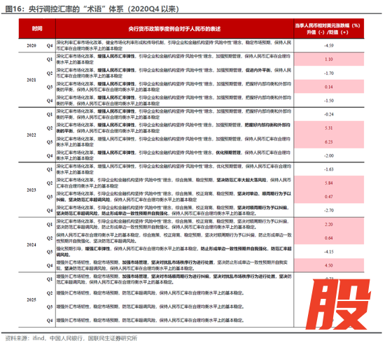 关注央行/官媒的调控表述。从2020年第四季度以来货币政策季度例会的表述来看,央行对于升值调控的主要话术是“增强汇率弹性”,“促进/把握好内外平衡”,另外也可能会使用“防止形成单边一致性预期”等措辞来给升值降温。不过央行的预期引导往往是事后的,至少2025年二季度以来例会对于汇率措辞没有变化。