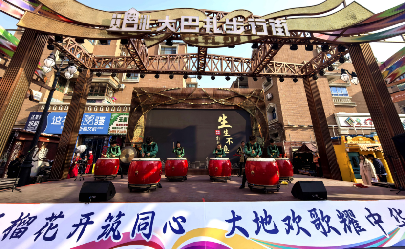10月22日,“打起手鼓唱起歌”首届中国新疆民间艺术季优秀节目巡演国际大巴扎步行街演出现场。(陈宝江 摄)